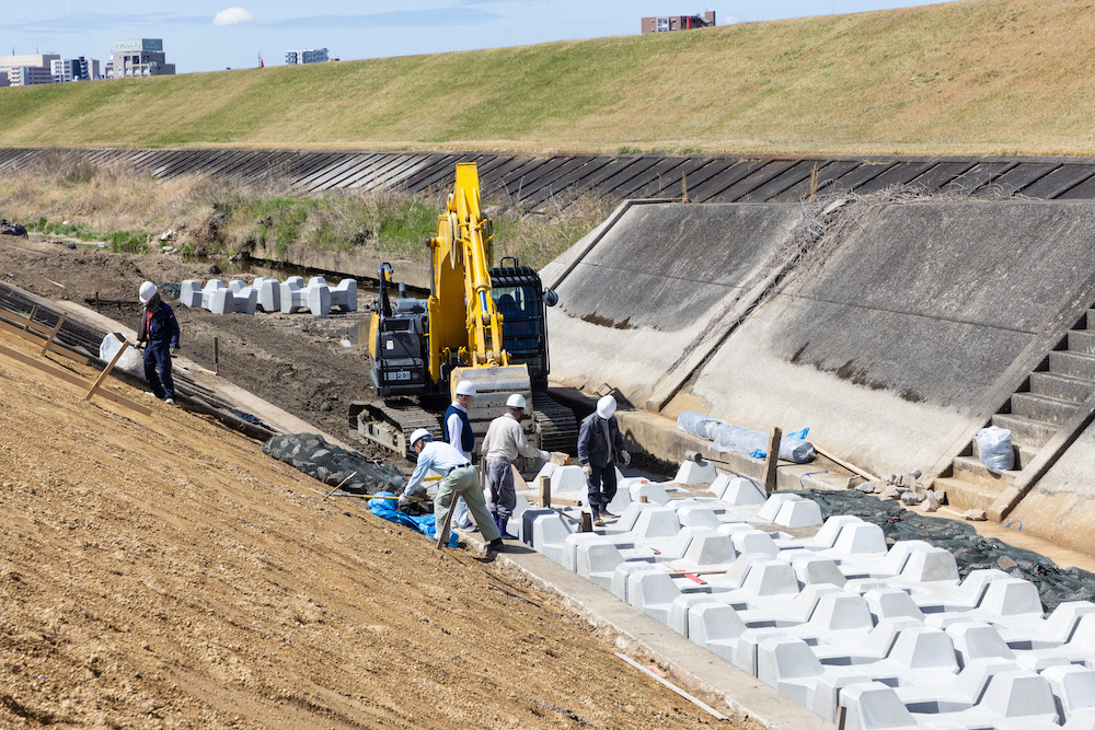 私たちが目指すのは、地域の人たちの暮らしをさりげなく支えながらも、地域の安全と発展にも幅広く貢献する土木工事。市街地でも山間地でも、容赦なく起こりうる自然災害や不慮のアクシデントから人命や財産を守るため、蓄積してきたノウハウと技術をもって日々、取り組んでいます。