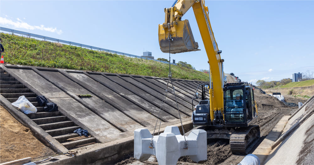 私たちが目指すのは、地域の人たちの暮らしをさりげなく支えながらも、地域の安全と発展にも幅広く貢献する土木工事。市街地でも山間地でも、容赦なく起こりうる自然災害や不慮のアクシデントから人命や財産を守るため、蓄積してきたノウハウと技術をもって日々、取り組んでいます。